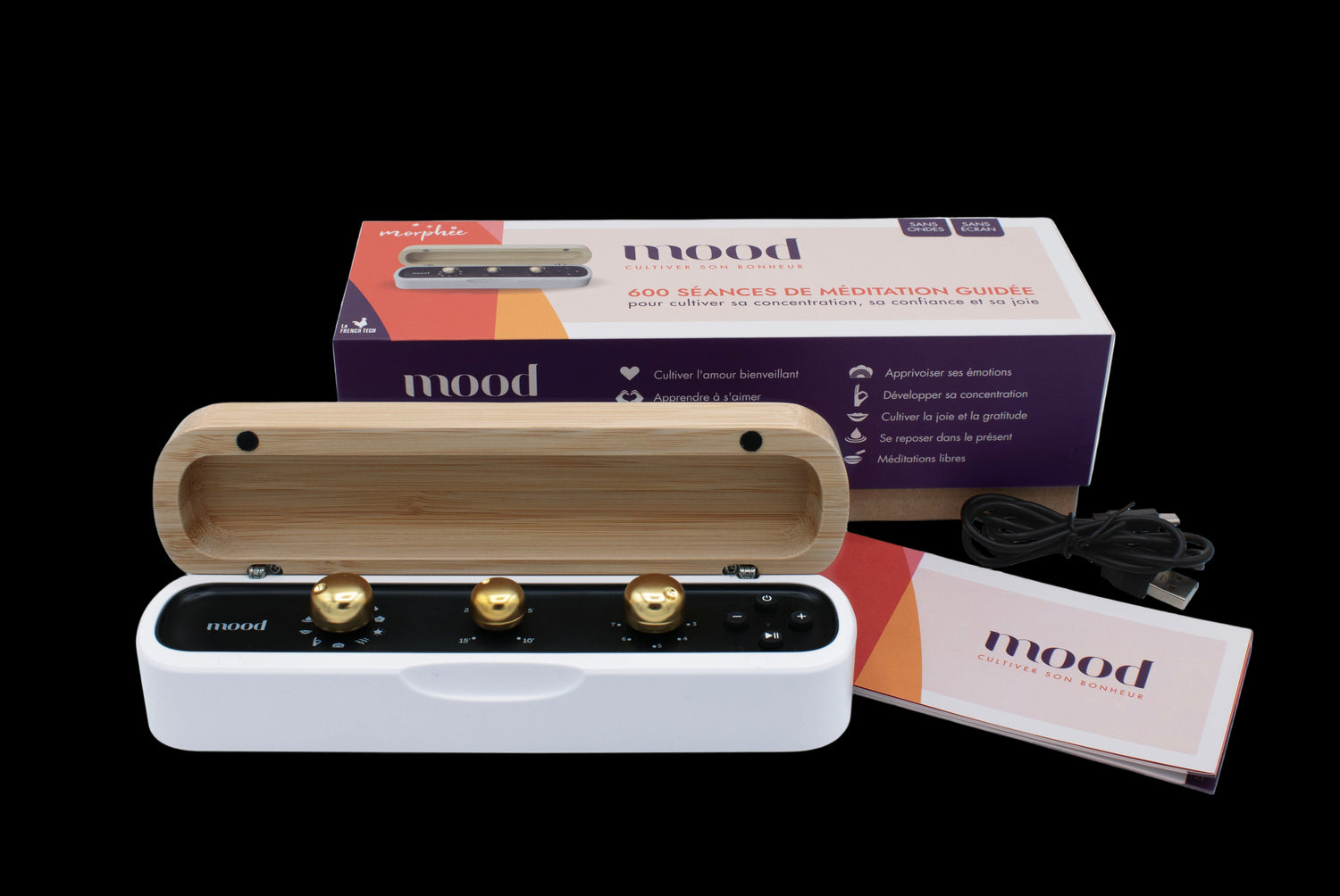 Mood est un outil de développement personnel qui vous permet de bénéficier de toutes les vertus de la méditation, entre autre de développer sa concentration, sa confiance et sa joie. Morphée sert à s'endormir facilement et profiter d'un sommeil profond et réparateur.