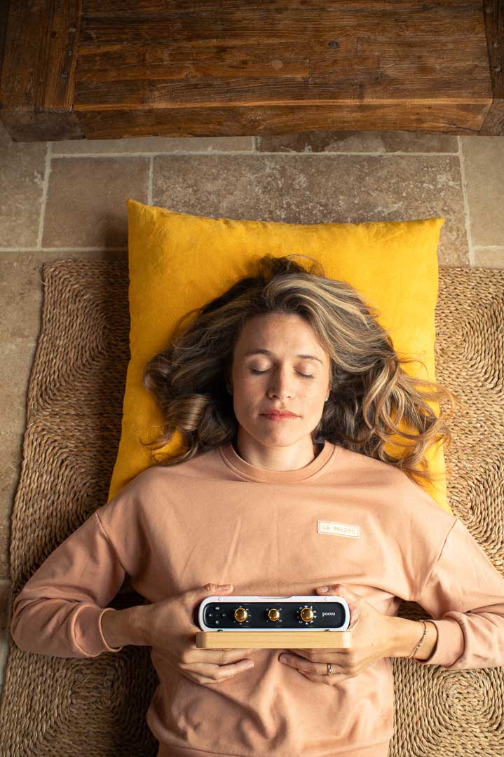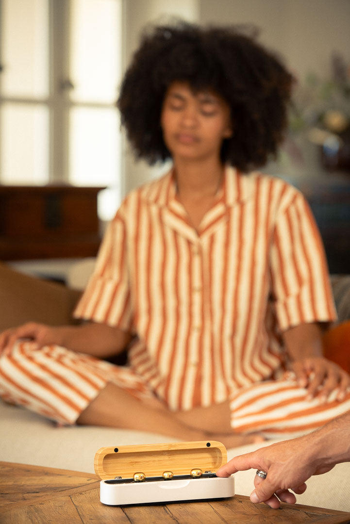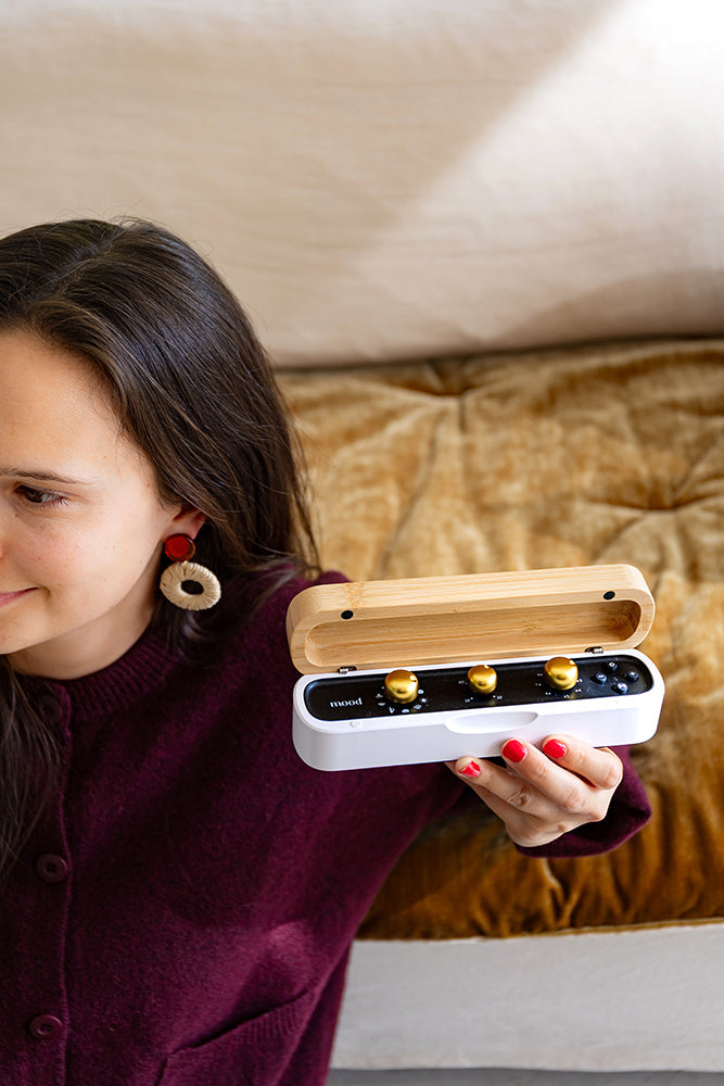 Les séances de Mood s'écoutent via un haut-parleur intégré ou avec des écouteurs .